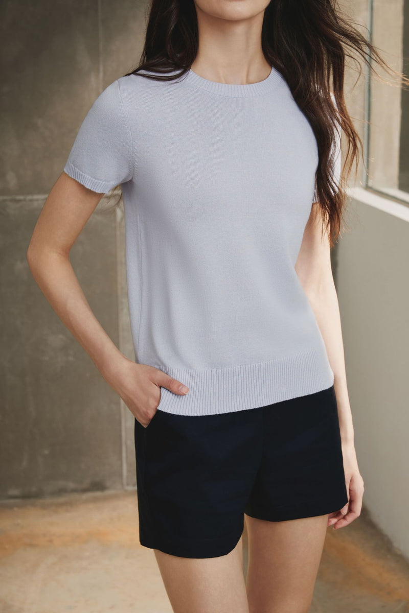 Cotton Melange Short Sleeve Sweater, Heather Blue -